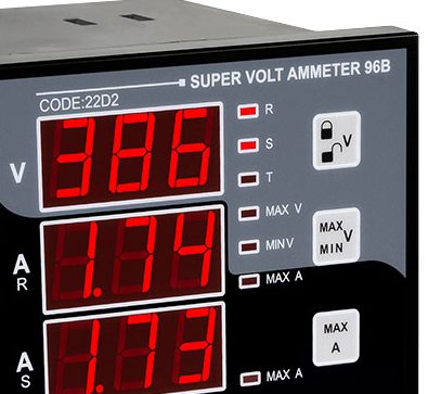 سوپر ولت آمپر متر96B شیوا امواج محصولی جامع و کارآمد است که شامل؛ ۳ آمپر متر، ۳ ماکزیمتر ولتاژ، ۱ مینیمتر ولتاژ و ۱ فرکانس متر و… به عبارتی حدود ۱۰ دستگاه در یک دستگاه تولید شده که عمده عملکر اش جهت کنترل و نظارت مکرر وضعیت برق سه فاز با ولتاژ ورودی ۳۰۰ الی ۵۰۰ ولت AC همچنین امکان اتصال CT تا ۱۰۰۰آمپر با قابلیت ذخیره سازی مقادیر در حافظه خود به یک دستگاه ابر قدرت در این زمینه مبدل شده تا با دقت بسیار بالای خود و هزینه ی اقتصادی یک دستگاه همه فن حریف تلقی شود.